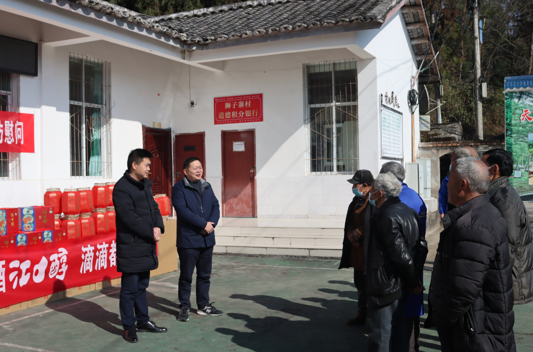 1月16日,在農(nóng)歷春節(jié)即將到來之際,江口醇董事長陳林才一行,到巴中市天馬山鎮(zhèn)獅子寨村、平昌縣駟馬鎮(zhèn)鹿峰村,走訪慰問了老黨員、駐村醫(yī)生、鄉(xiāng)村教師、貧困戶、傷殘軍人,將愛心滿滿的慰問品和濃濃的節(jié)日祝福,送到他們的手中、心里。