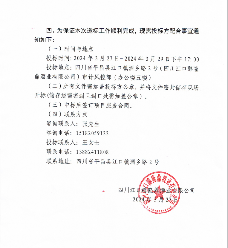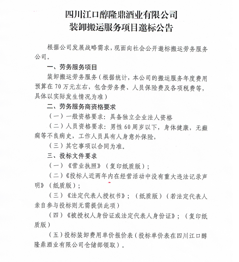 四川江口醇隆鼎酒業(yè)有限公司裝卸搬運(yùn)服務(wù)項(xiàng)目邀標(biāo)公告
